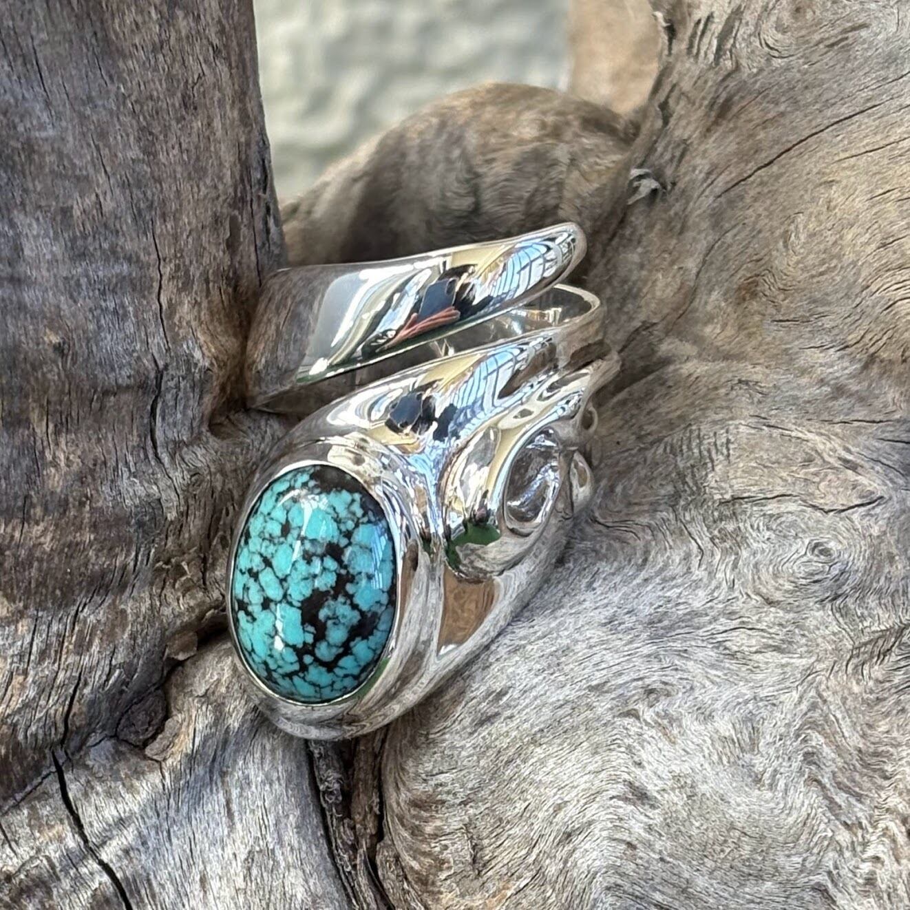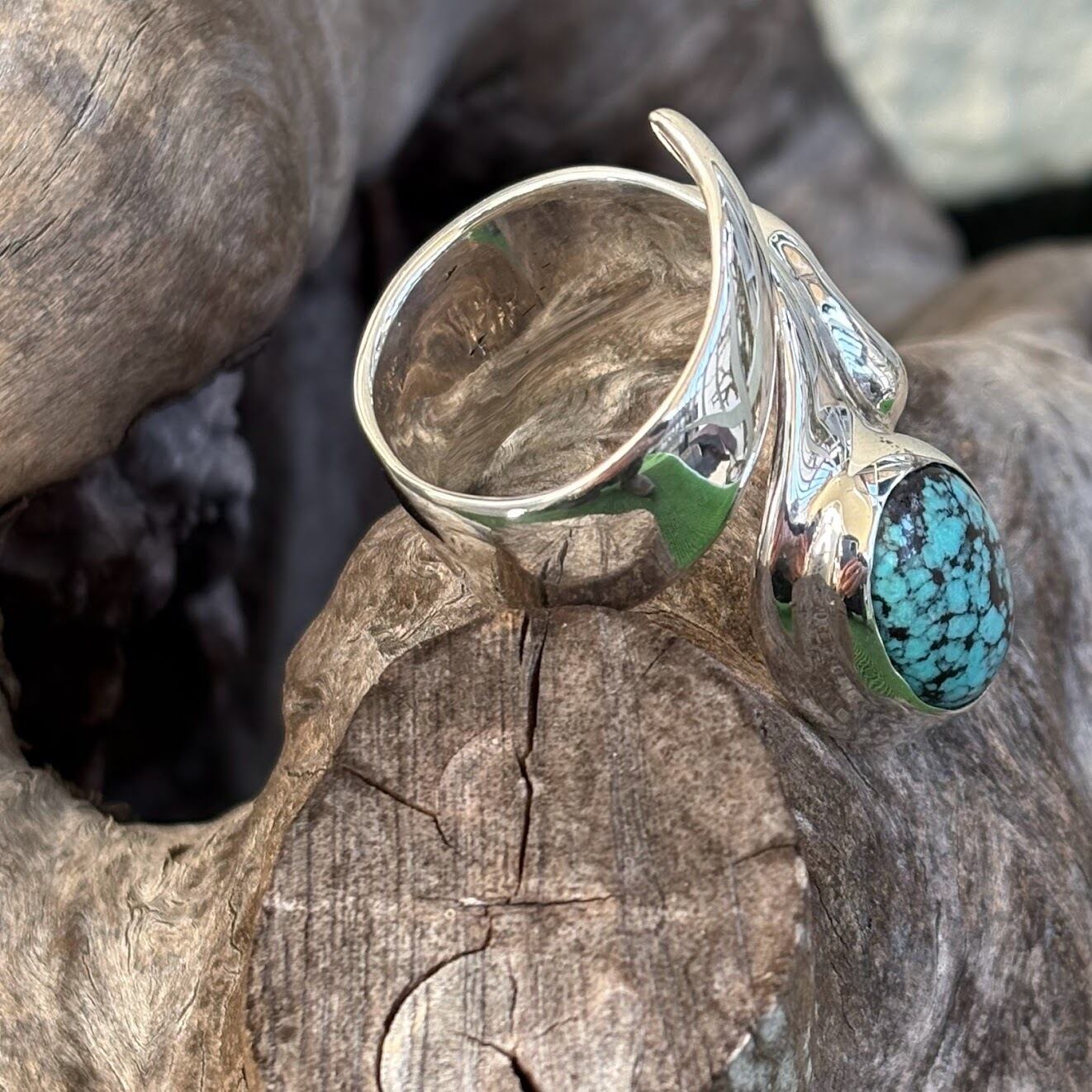 This Spider Turquoise ring features only one stone, making it a one-of-a-kind piece.
