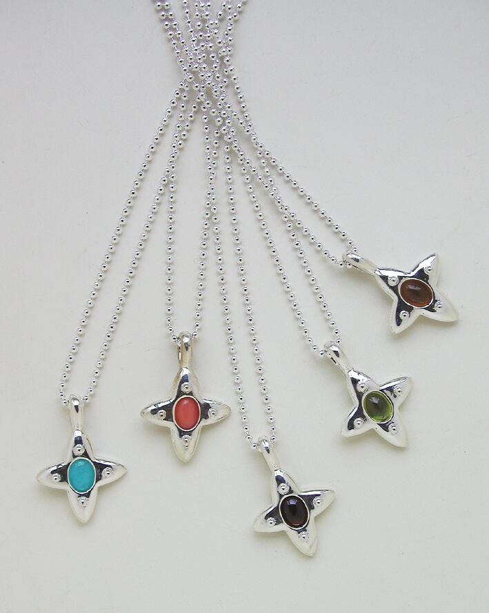 今回久々に復刻しました通称「クリオネ」ペンダント。すべて天然石です。