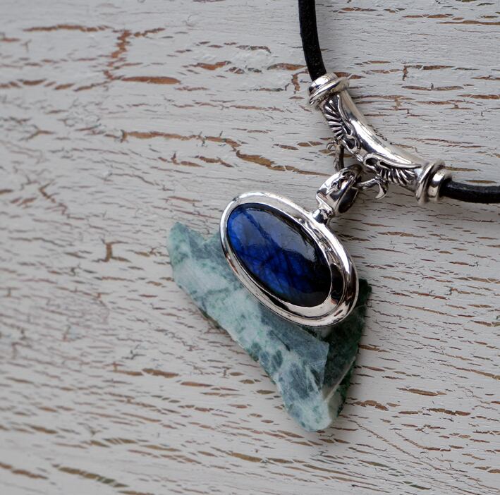 ラブラドライト・ペンダント(横型・パイプ+革紐仕様)