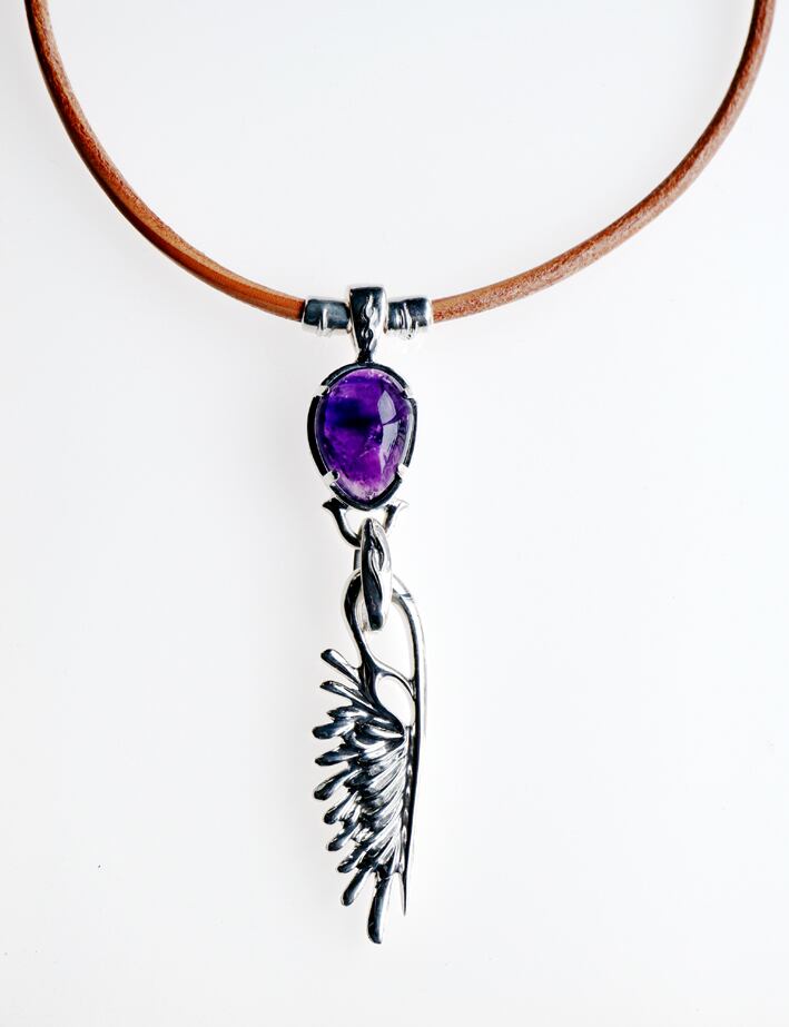 アメシスト&大ウイング・ペンダント(革紐仕様)