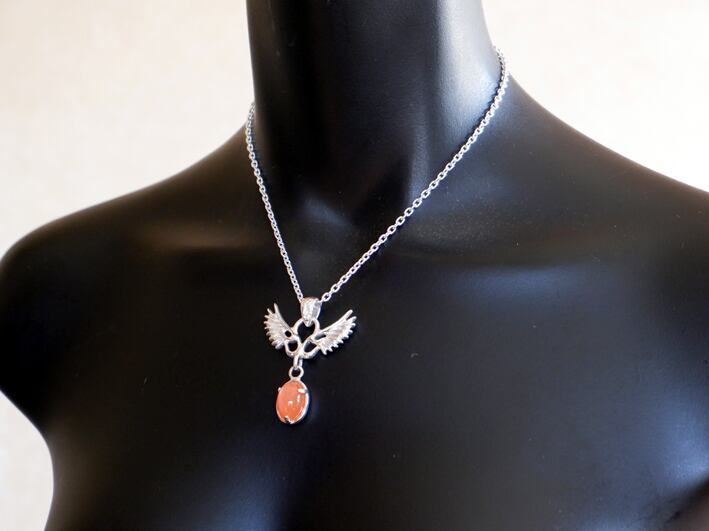オレンジムーンストーン&Wウイング・ペンダント(40cmチェーン付き)