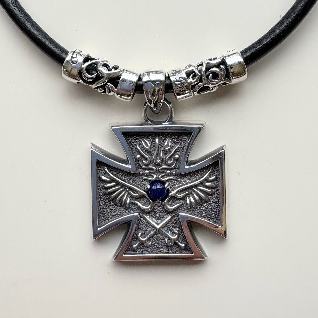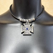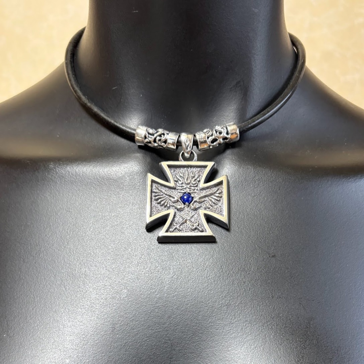アイアンクロス・ペンダント(ビーズ+革紐仕様)